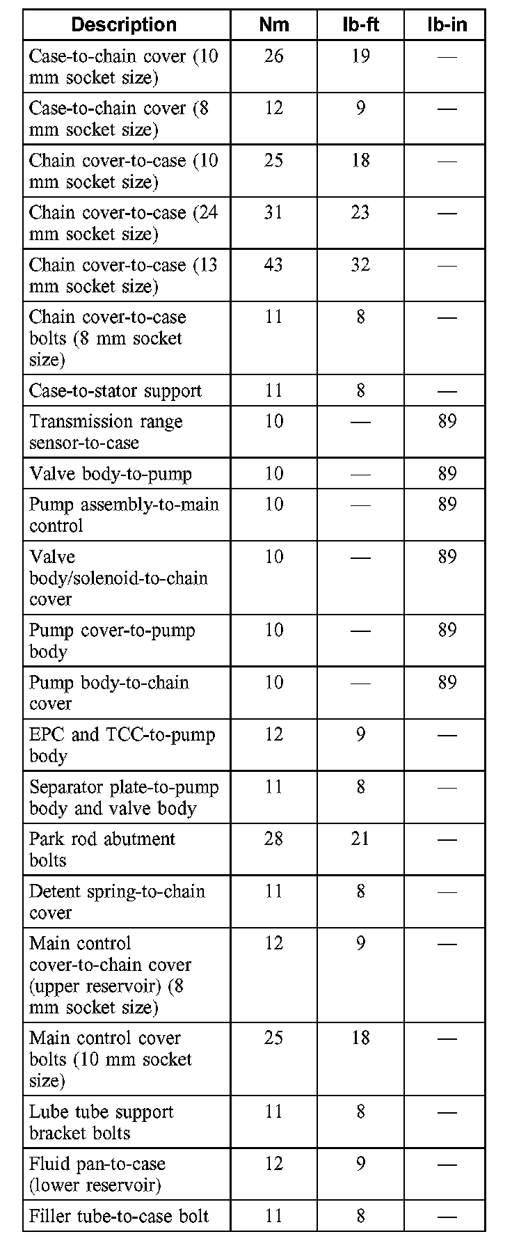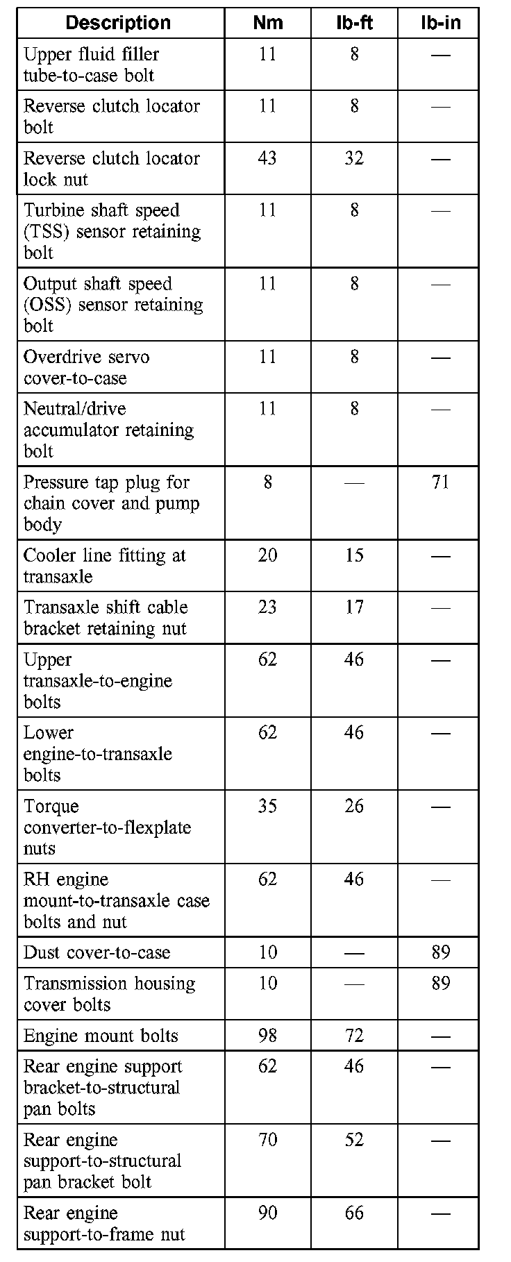 Torque Specifications