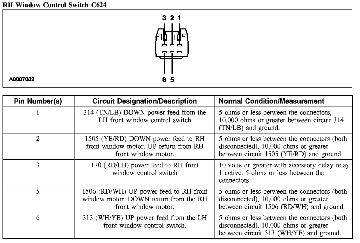 RH Window Control Switch C624: