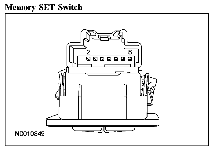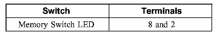 To check the memory SET switch LED, connect the positive meter lead to terminal 2 and the negative lead to terminal 8. The meter should indicate greater than 0.3 volts. Reversing the leads, the meter should read OL.