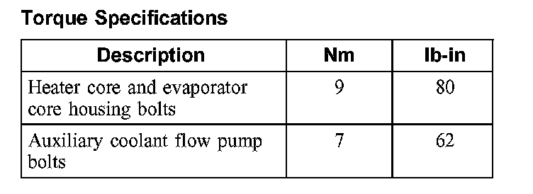 Torque Specifications: