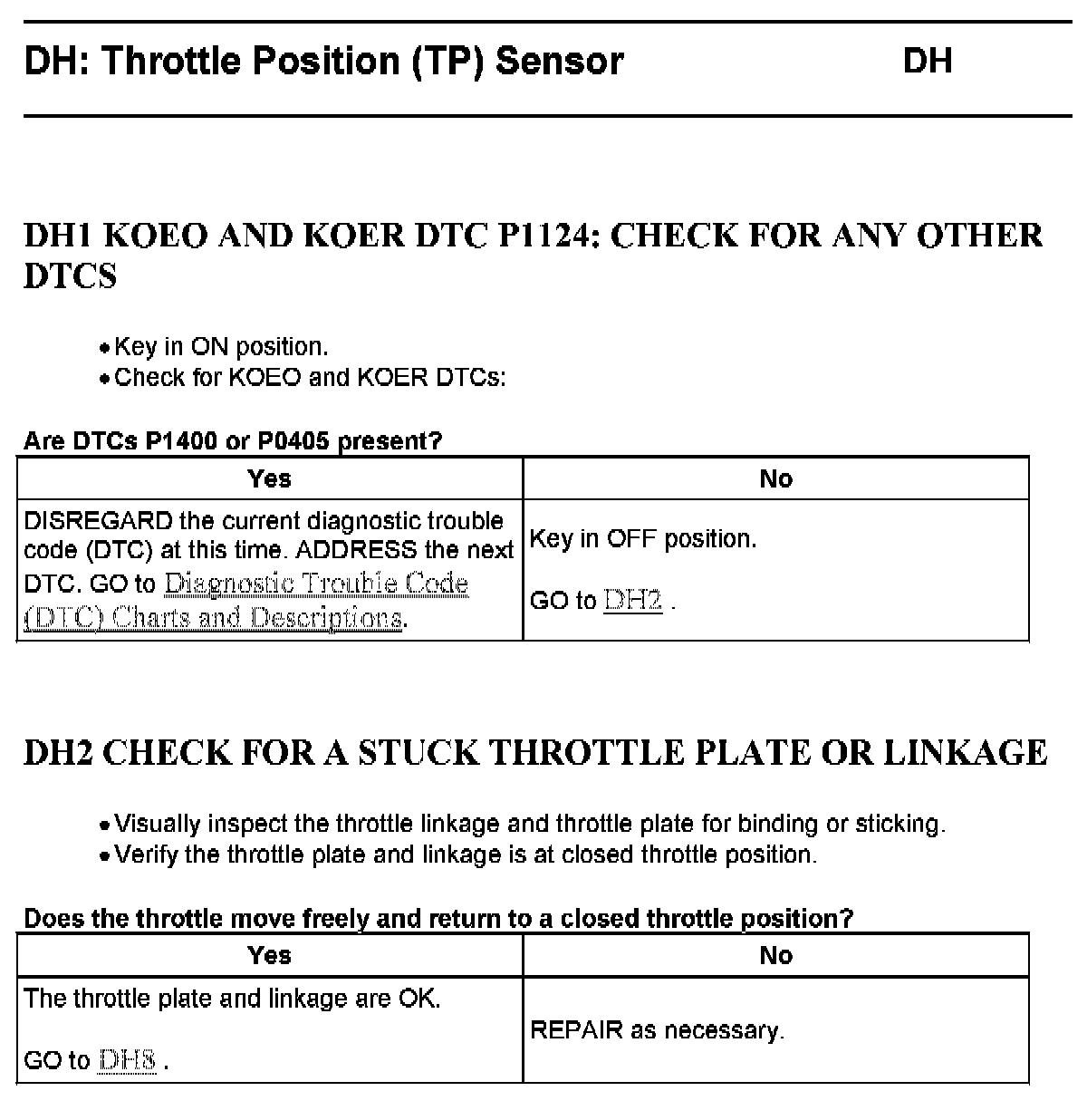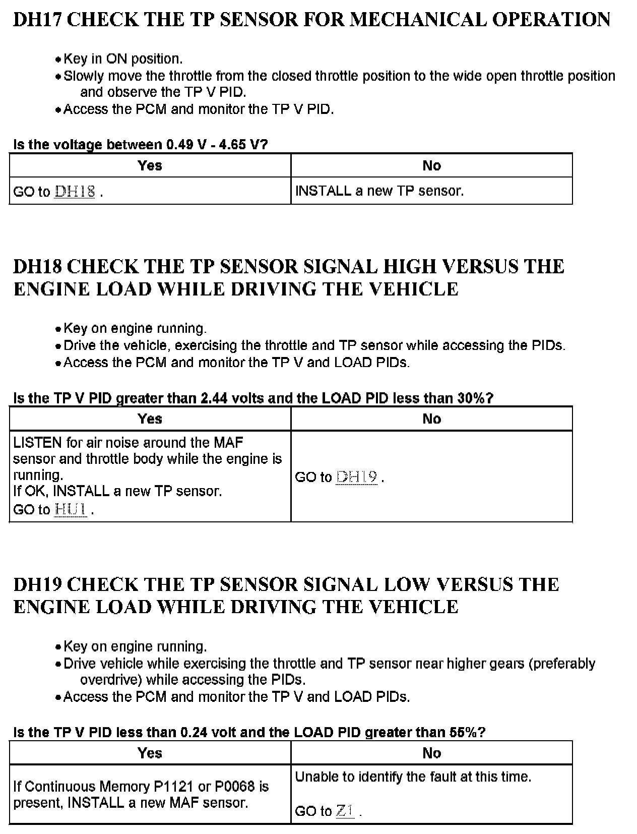 Tests DH: Throttle Position (TP) Sensor
