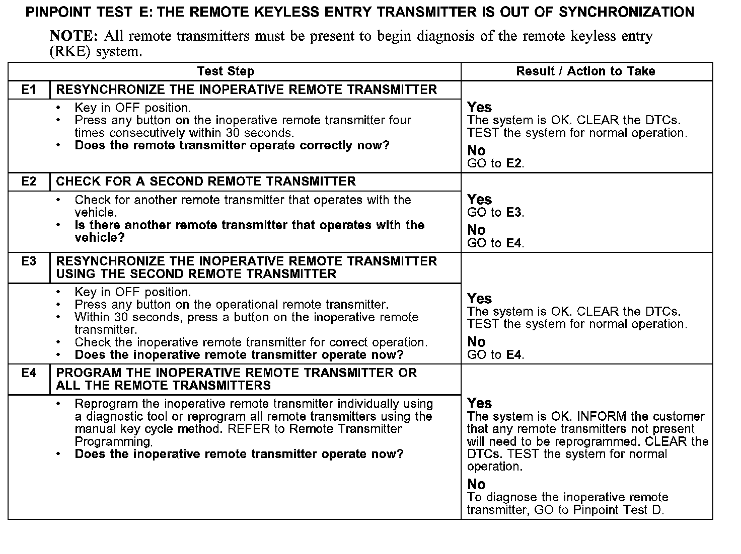 PINPOINT TEST E: THE REMOTE KEYLESS ENTRY TRANSMITTER IS OUT OF SYNCHRONIZATION