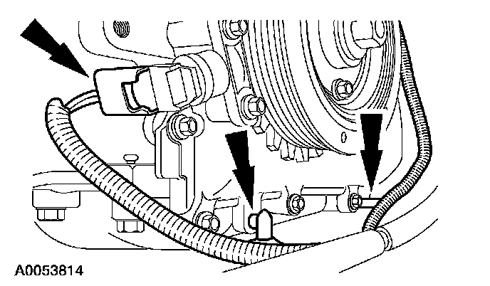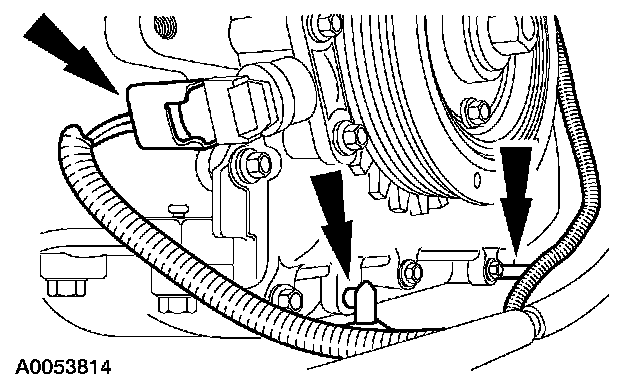 3. Disconnect the Crankshaft Position (CKP) sensor electrical connector and the wiring harness pin-type retainers.