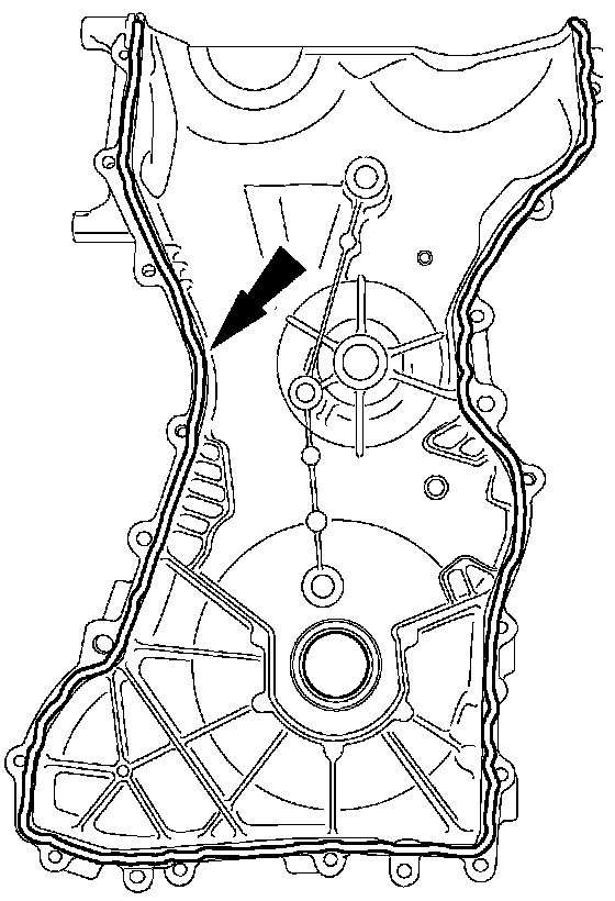 Apply a 2.5 mm (0.1 inch) bead of silicone gasket and sealant to the cylinder head and oil pan joint areas. Apply a 2.5 mm (0.1 inch) bead of silicone gasket and sealant to the front cover.
