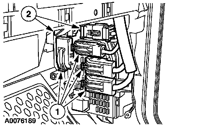 1. CAUTION: Prior to removal of the smart junction box (SJB), it is necessary to upload module configuration information to the diagnostic tool. This information needs to be downloaded into the new module once installed.