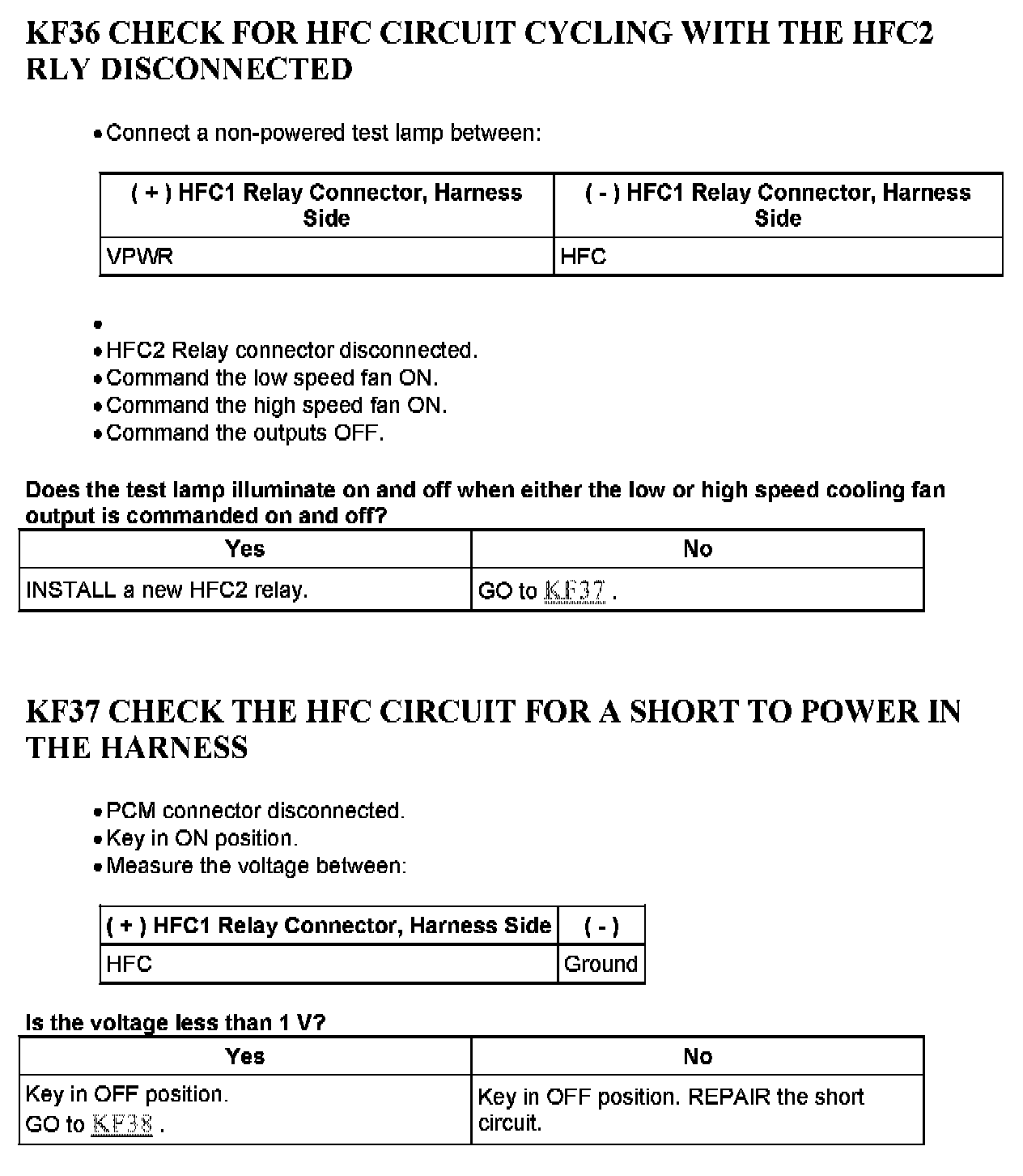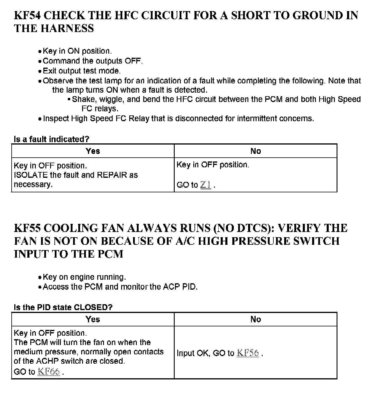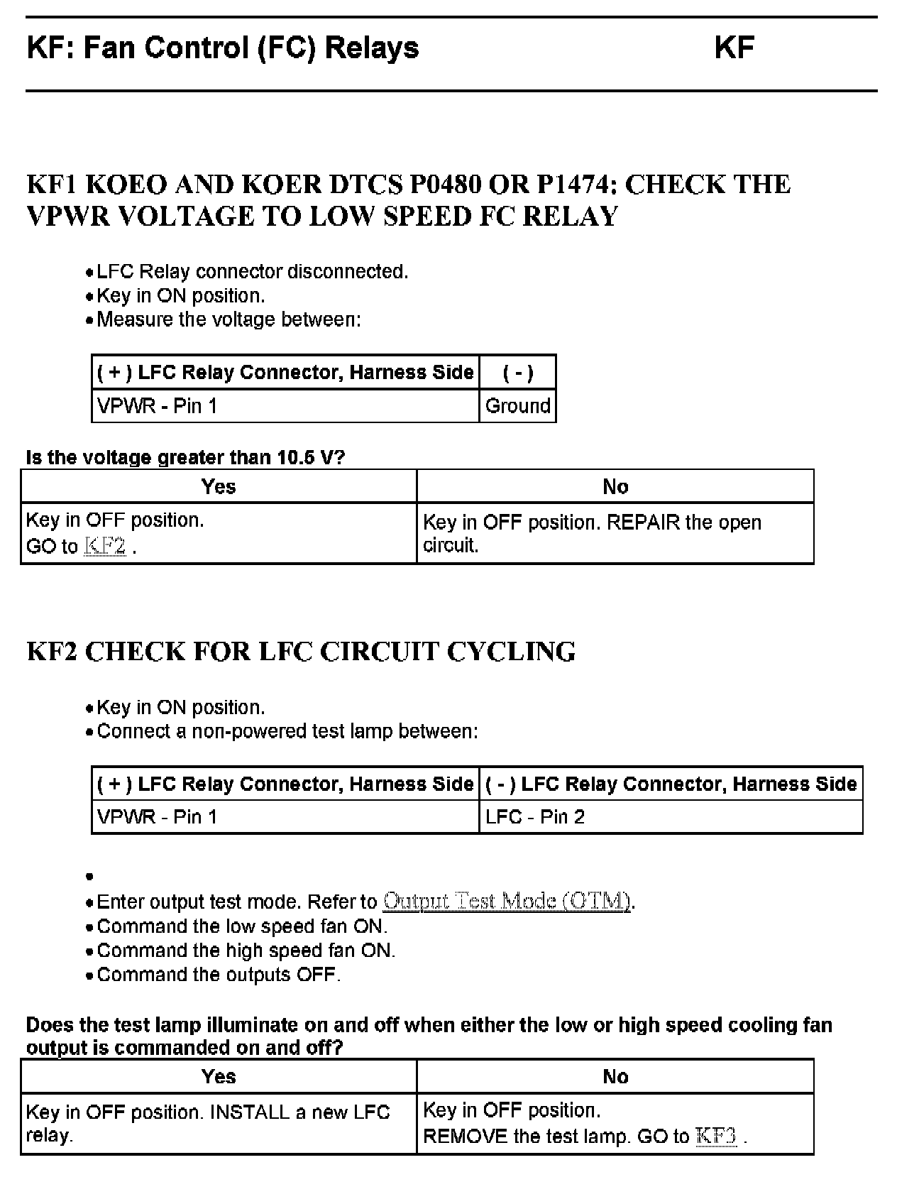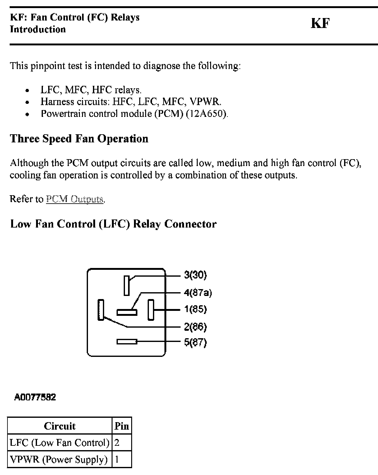 PINPOINT TEST KF: FAN CONTROL (FC) RELAYSKF Introduction: