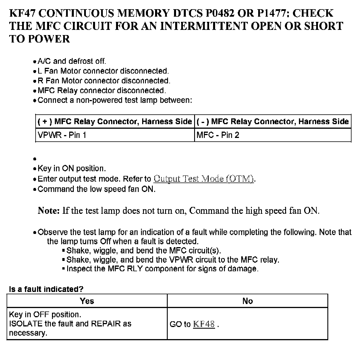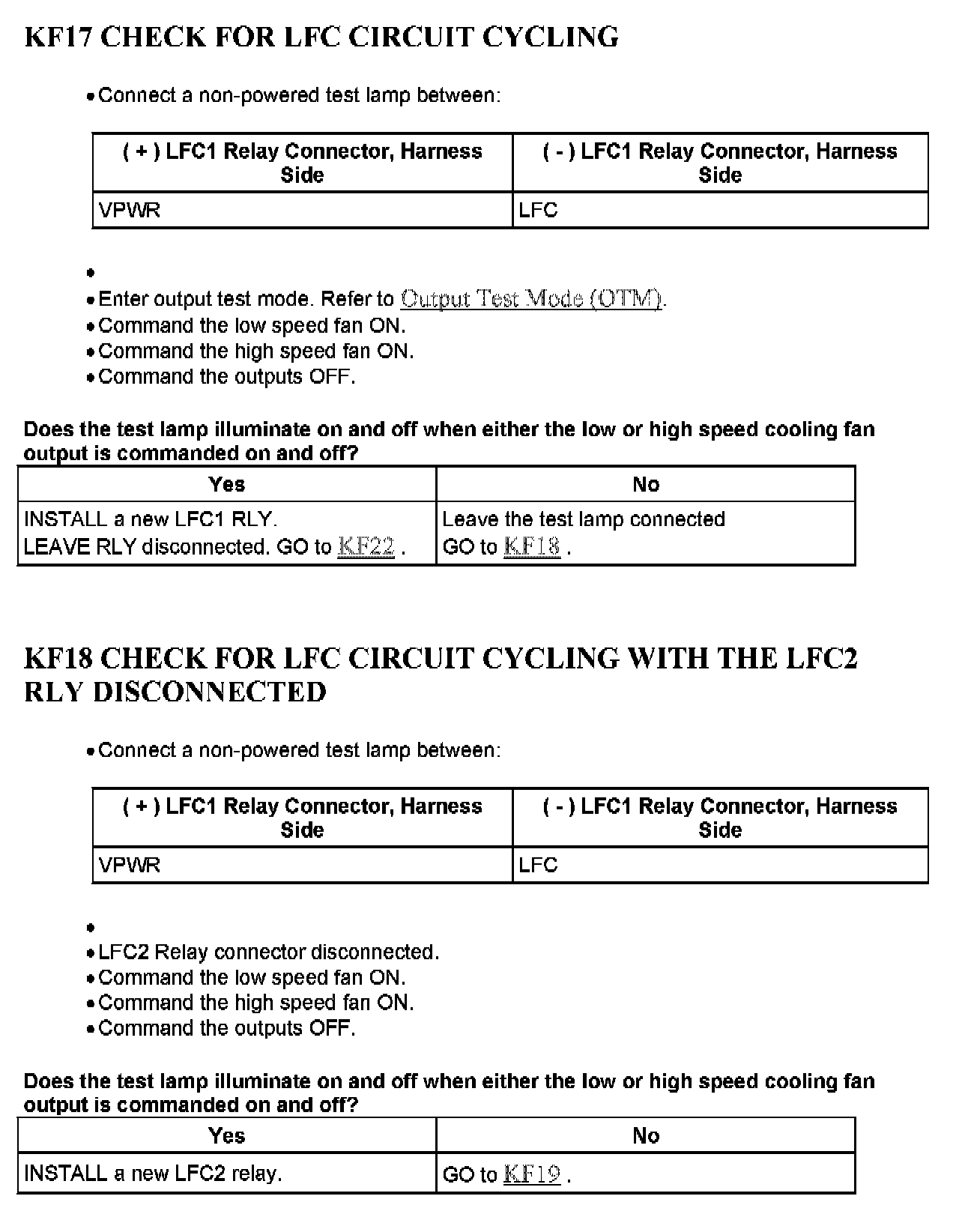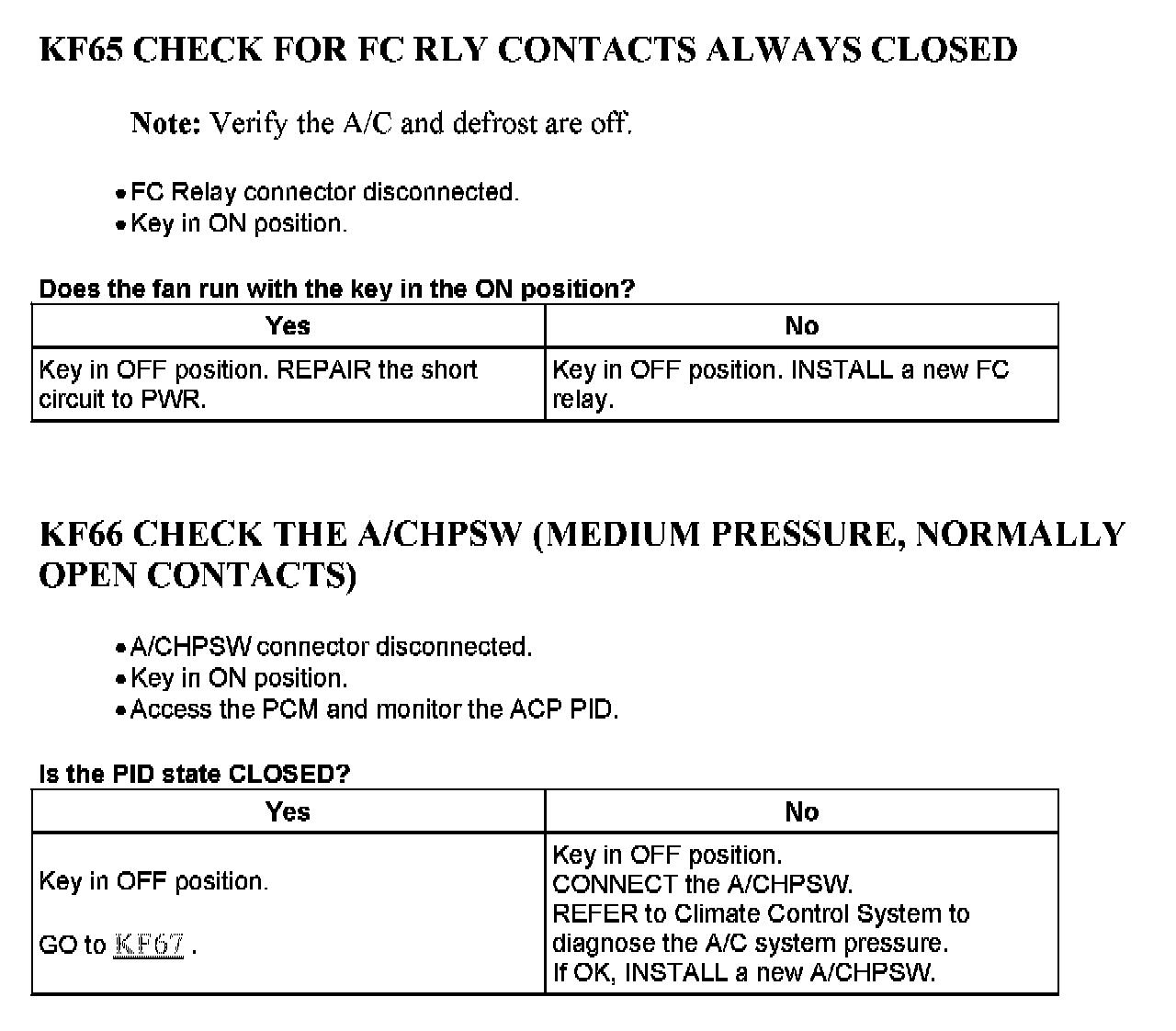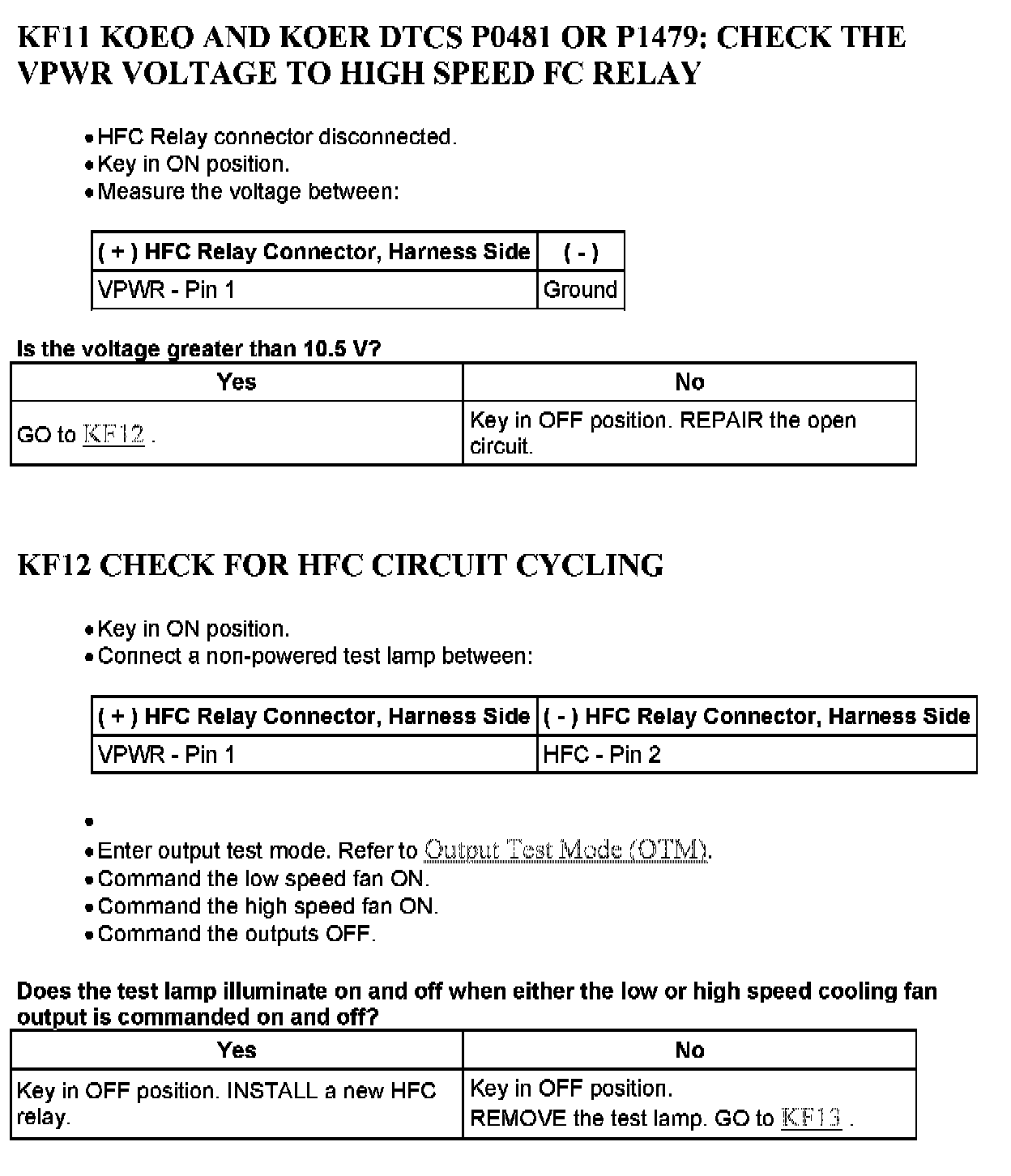 PINPOINT TEST KF: FAN CONTROL (FC) RELAYSKF Introduction: