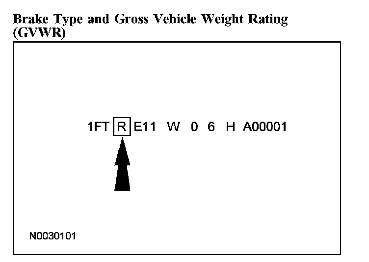 The fourth VIN position is the vehicle brake type and gross vehicle weight rating (GVWR) code. All vehicles use hydraulic brakes.