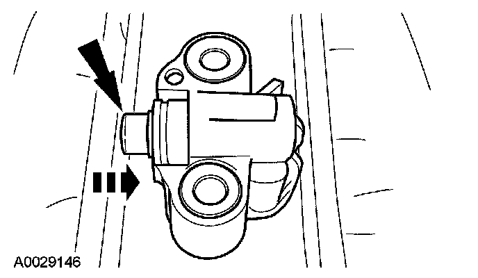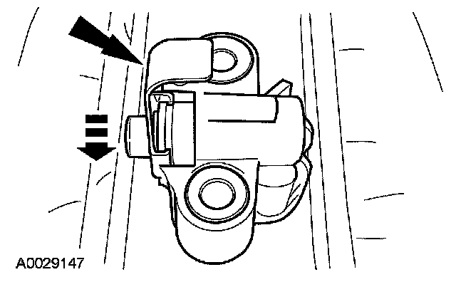 2. Install a retaining clip on the tensioner to hold the plunger in during installation.
