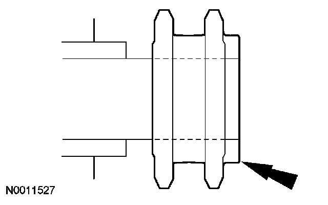 CAUTION: Prior to installation, inspect the tensioner-sealing bead for seal integrity. If cracks, tears, separation from the tensioner body or permanent compression of the seal bead is observed, install a new tensioner.