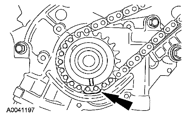3. Rotate the crankshaft until the timing mark on the RH camshaft sprocket is approximately at the 11 o'clock position and the timing mark on the LH camshaft sprocket is approximately at the 12 o'clock position.