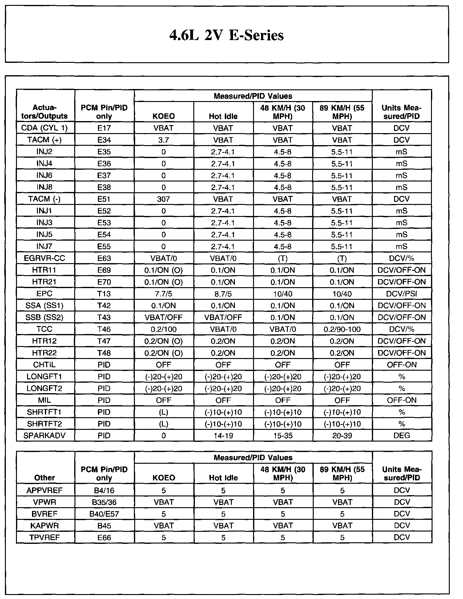 The Typical Diagnostic Reference Value Charts do not display fault parameter identifications (PIDs). These are PIDs which indicate a hard fault with the circuit. They display a value of YES or NO and are PIDs ending with the letter F.