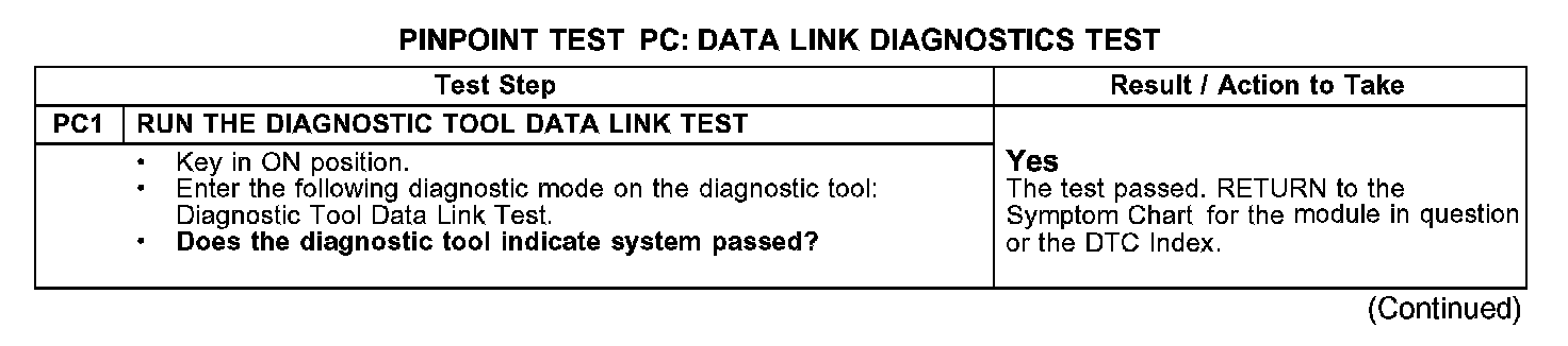 PINPOINT TEST PC: DATA LINK DIAGNOSTICS TEST