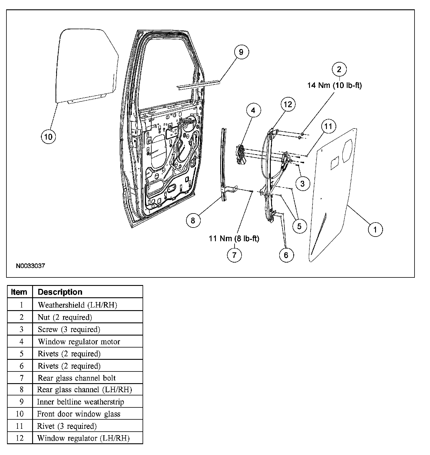 FRONT DOOR WINDOW REGULATOR AND MOTORSpecial Tool(s):