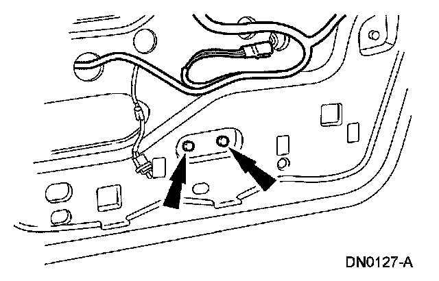 4. NOTE: Avoid enlarging the sheet metal holes in the door inner panel.