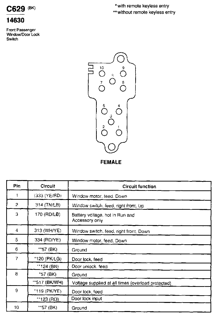 Front Passenger Window/Door Lock Switch