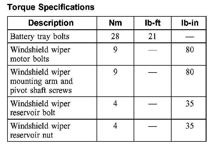 Torque Specifications: