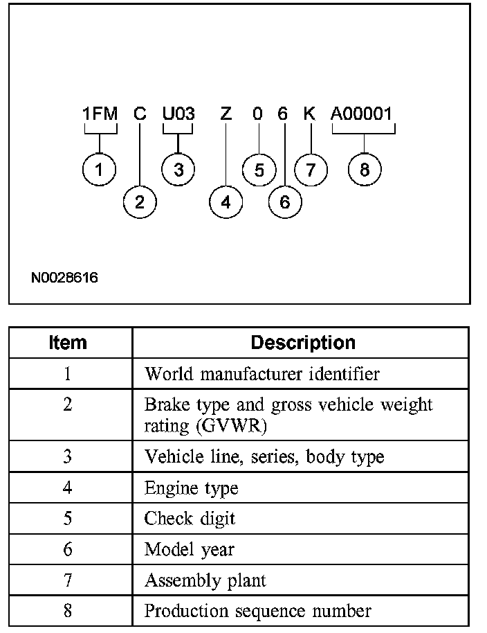 IDENTIFICATION CODESVehicle Identification Number
