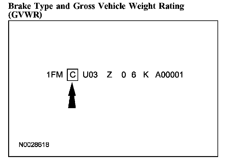 The fourth VIN position is the vehicle brake type and gross vehicle weight rating (GVWR) code, all vehicles use hydraulic brakes and driver and front passenger air bags.