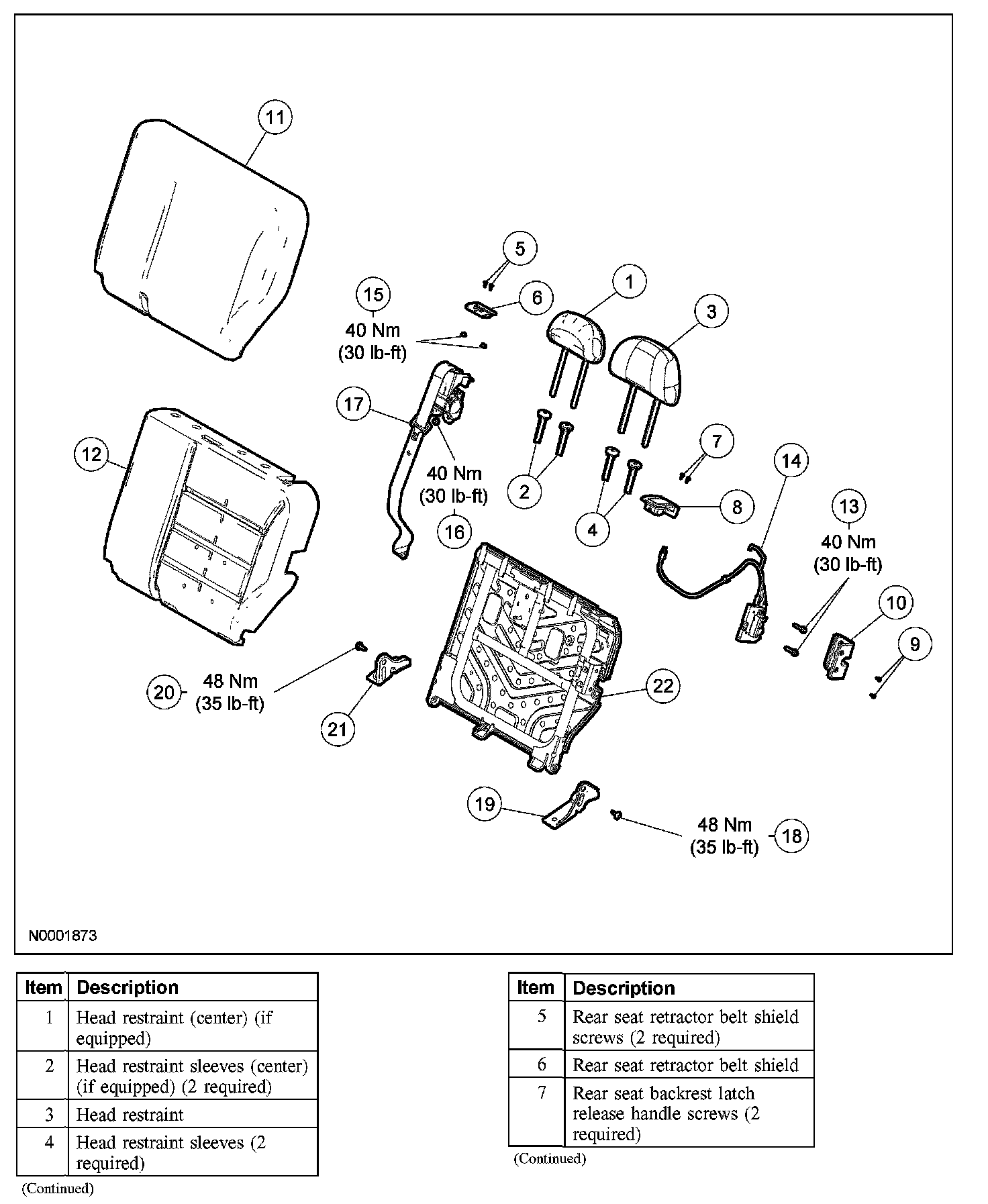 NOTE: LH rear seat back shown, RH rear seat back similar.