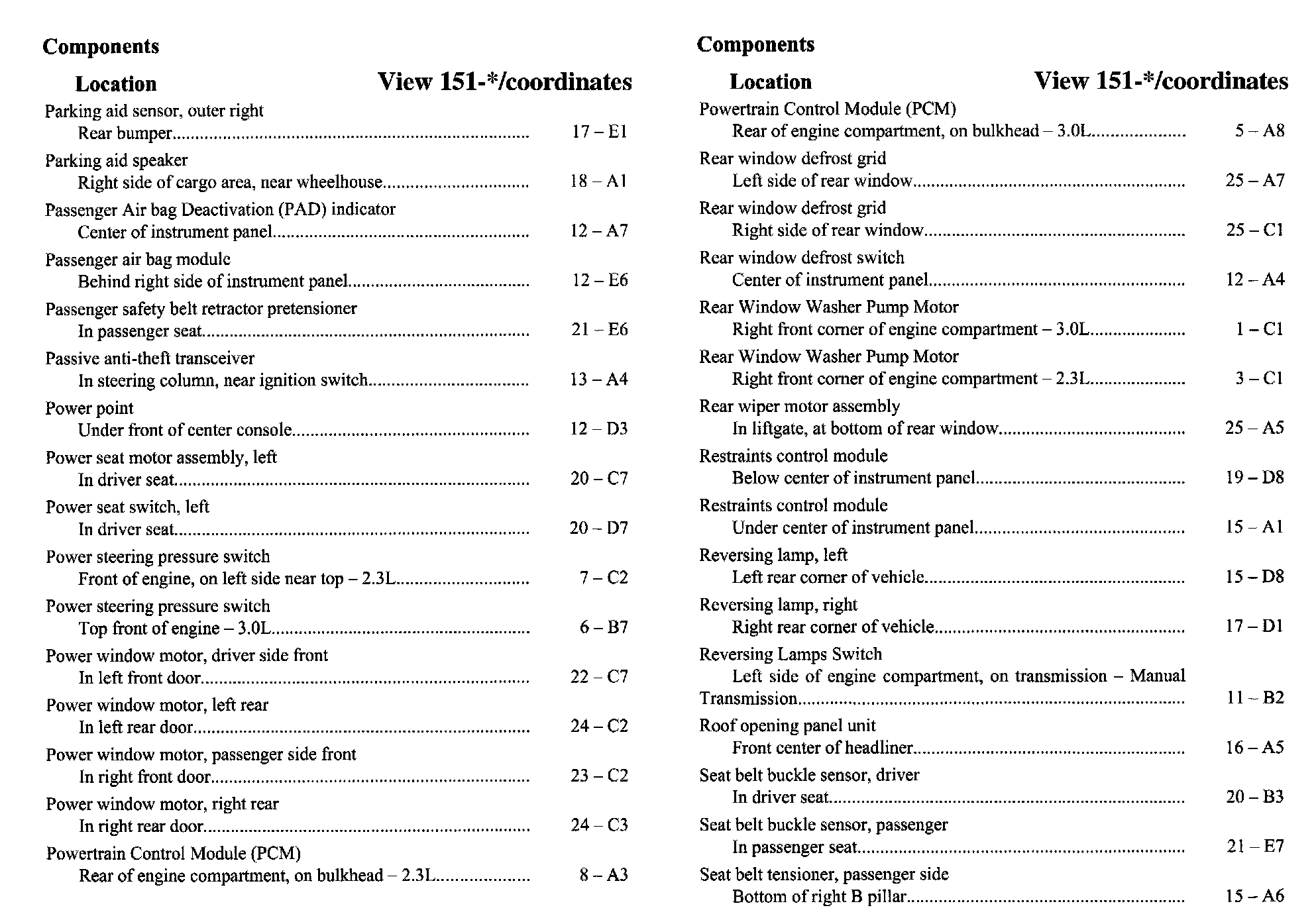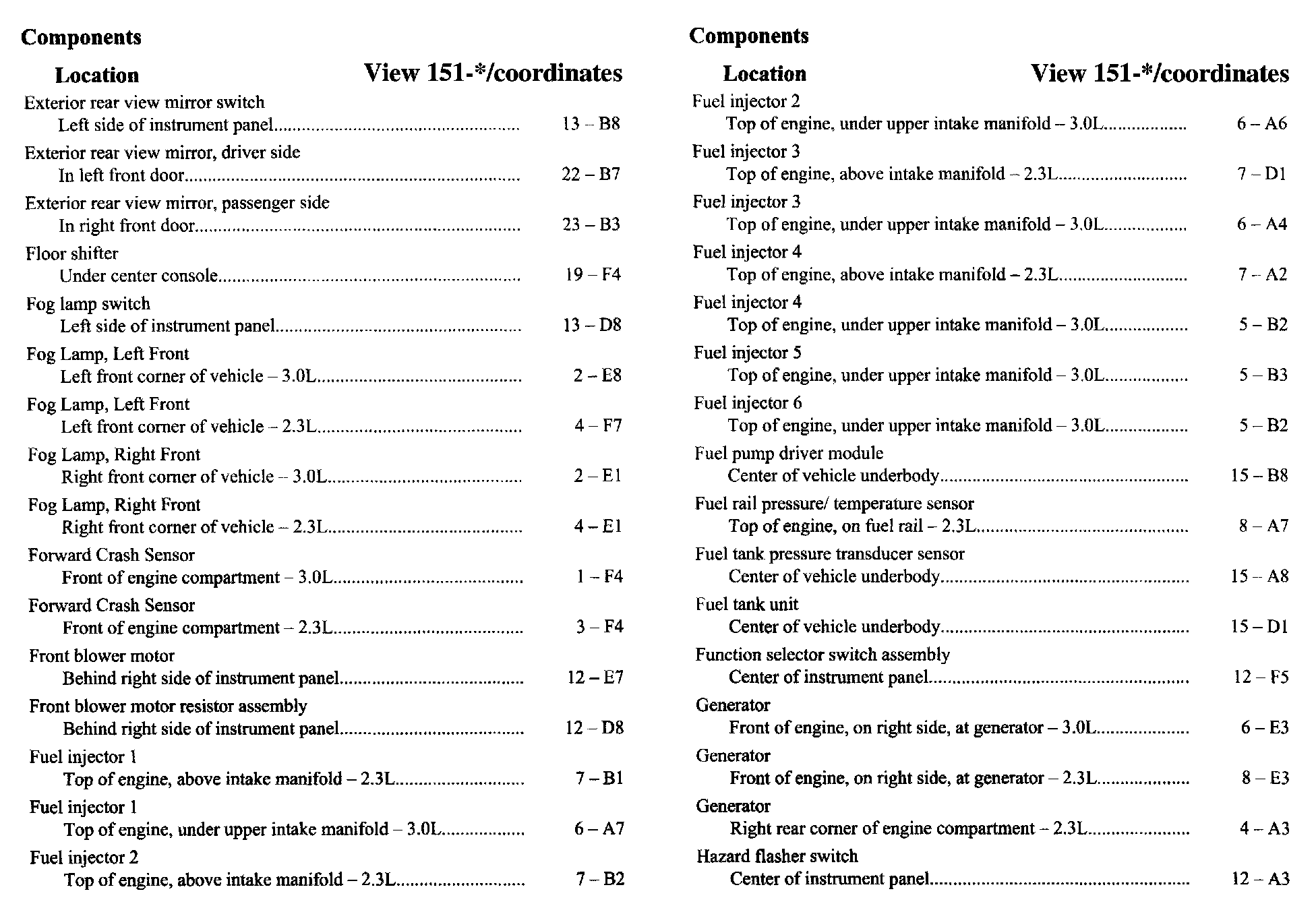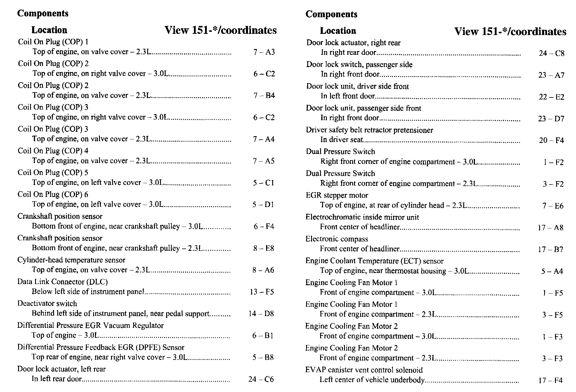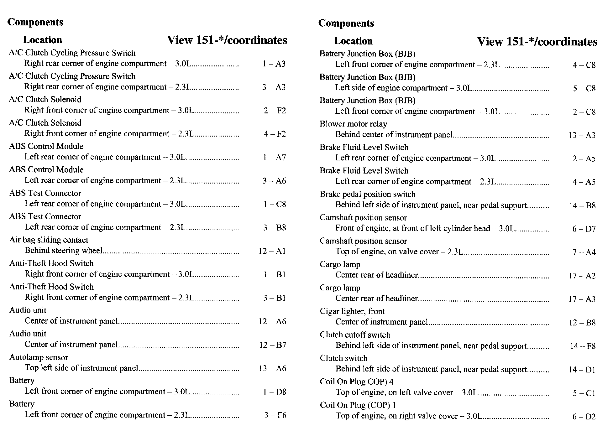 Component Location Index