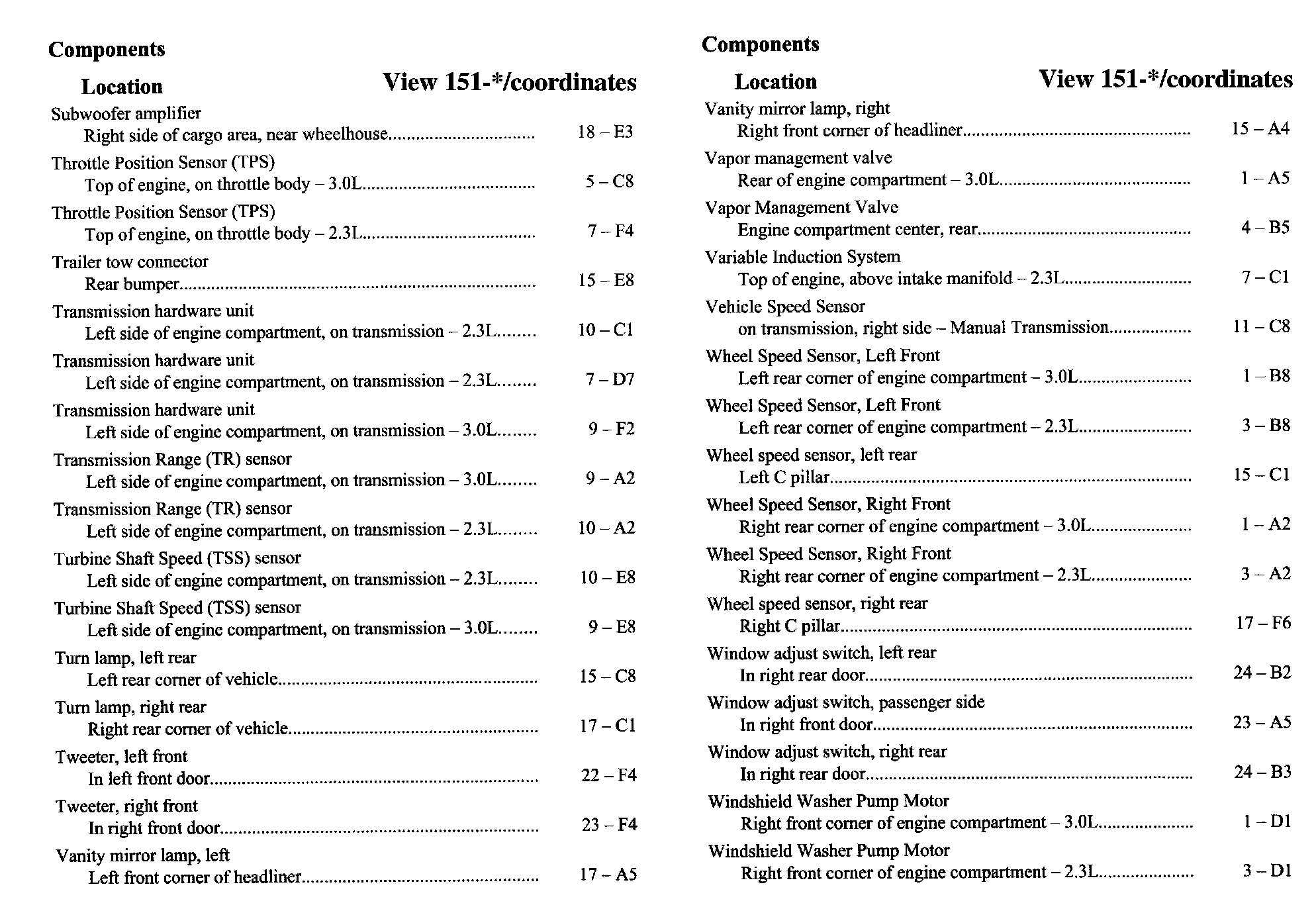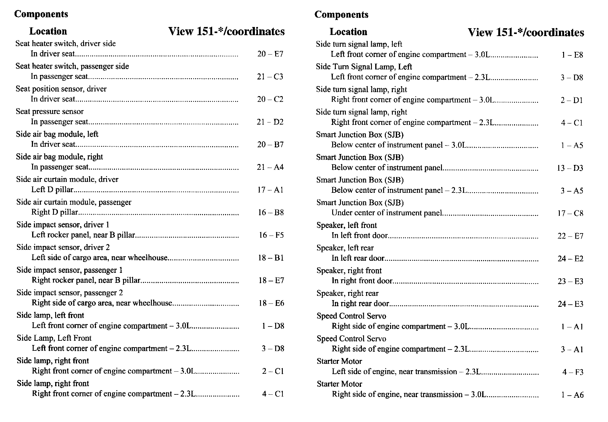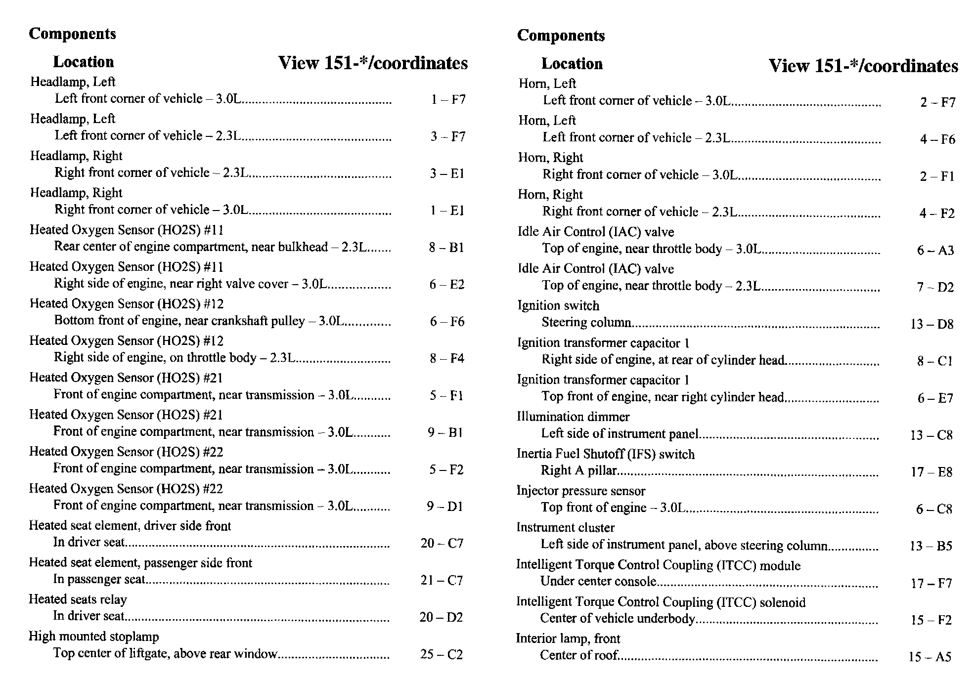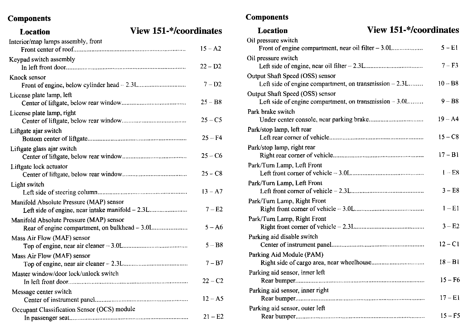 Component Location Index