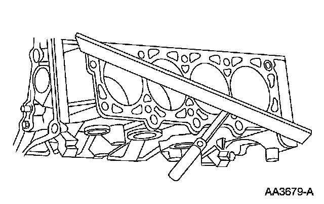 Use a straight edge and a feeler gauge to inspect the cylinder block for flatness. If the cylinder block is distorted, install a new short block assembly.