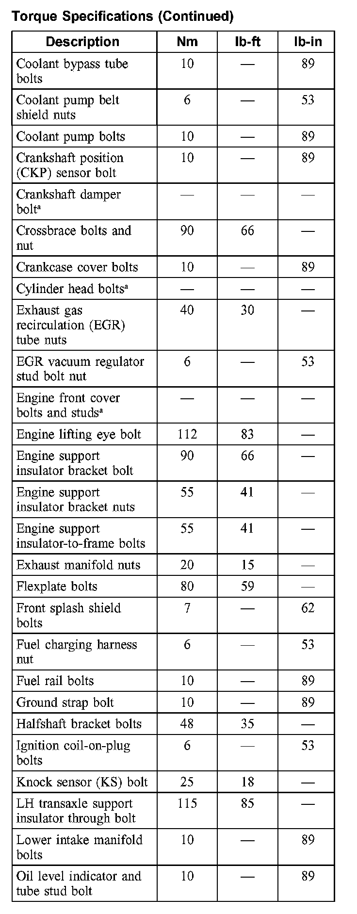 Torque Specifications
