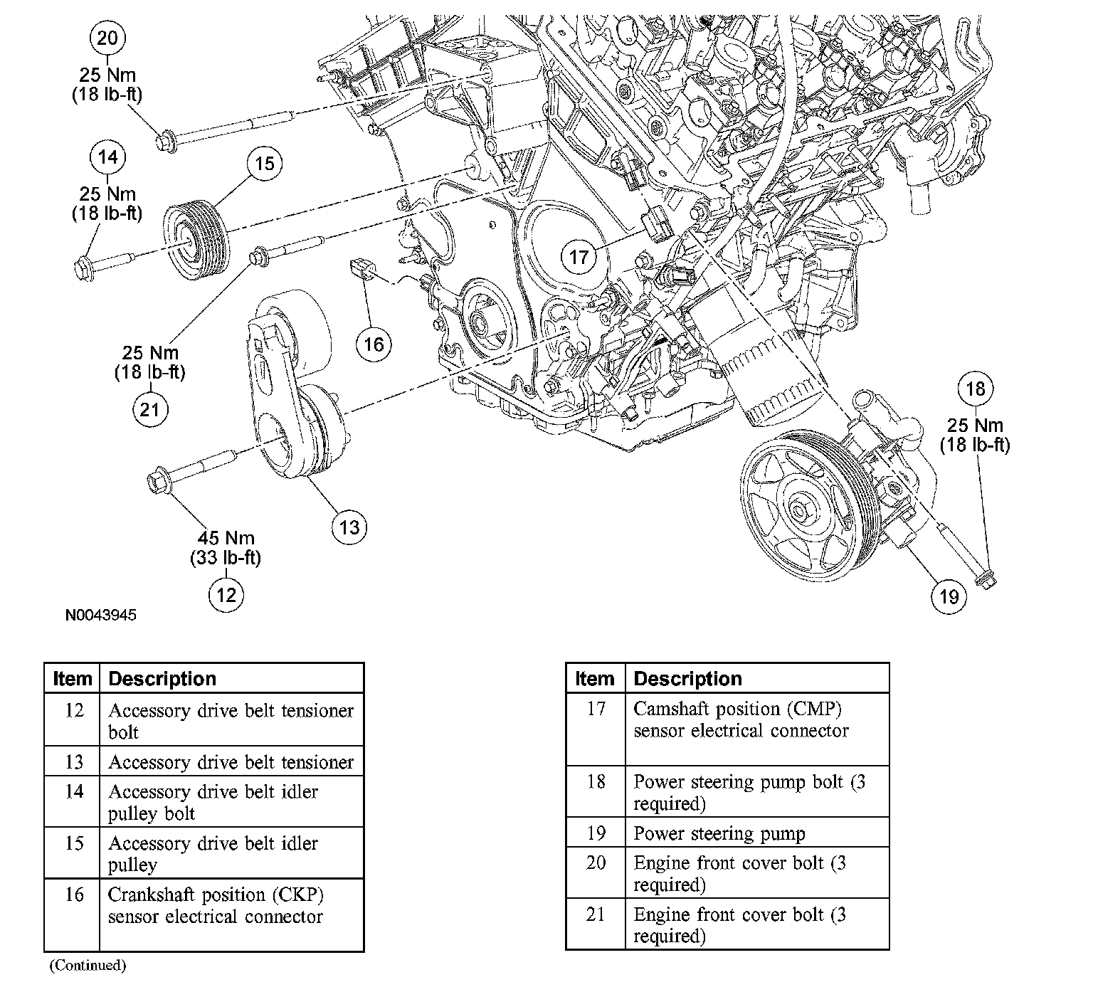 17. NOTE: The bolt positioned behind the power steering pressure tube will remain in the pump housing.