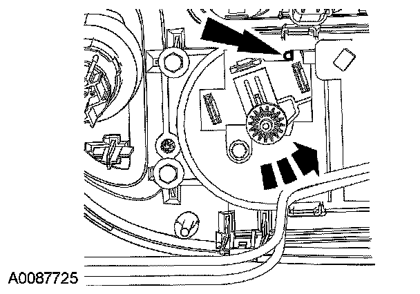 1. NOTE: Place the temperature selector switch in the full cold position before disengaging the temperature blend door actuator.