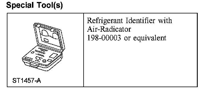 1. NOTE: An A/C refrigerant analyzer must be used to identify gas samples taken directly from the refrigeration system or storage containers prior to recovering or charging the refrigerant system.