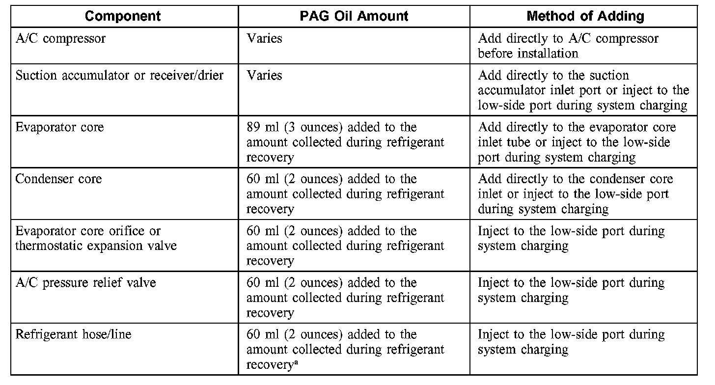 Refrigerant Oil Adding for New Suction Accumulator or Receiver/Drier Installation