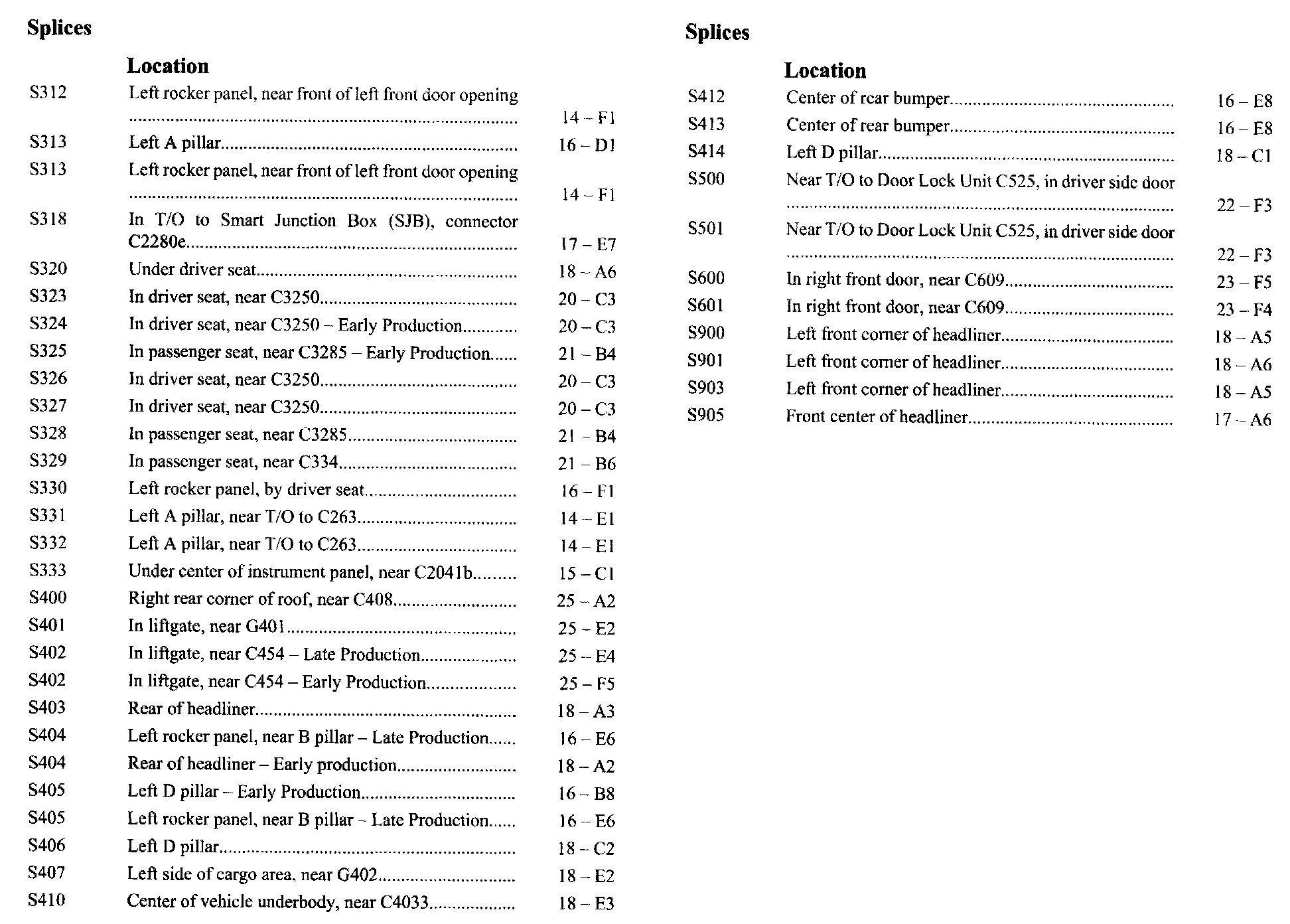 If a link on the Splices Location Index to a View is not provided, that means that the Splices and/or View in question does NOT apply to the vehicle model selected.