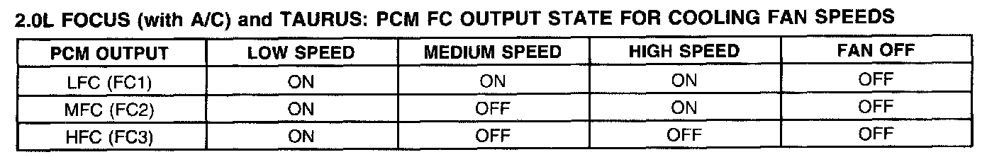 2.0L Focus (with A/C) And Taurus: PCM FC Output State For Cooling Fan Speeds: