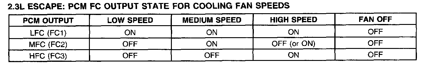 2.3L Escape: PCM FC Output State For Cooling Fan Speeds: