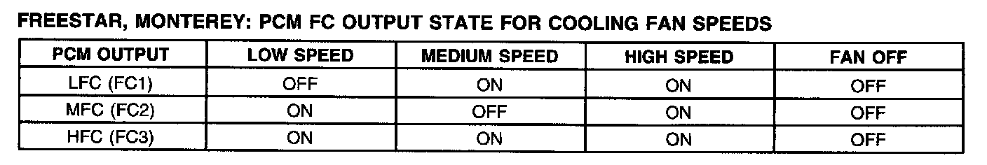 Freestar, Monterey: PCM FC Output State For Cooling Fan Speeds: