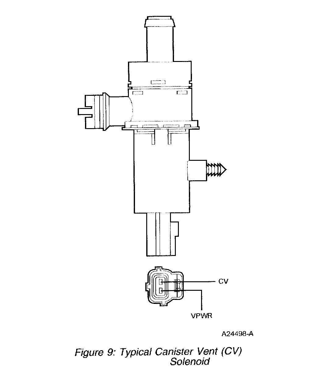 During the evaporative emissions (EVAP) leak check monitor, the CV solenoid seals the EVAP canister from the atmospheric pressure. This allows the EVAP canister purge valve to obtain the target vacuum in the fuel tank during the EVAP leak check monitor.