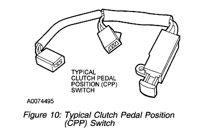 The CPP switch is an input to the PCM indicating the clutch pedal position. The PCM provides a low current voltage on the CPP circuit. When the CPP switch is closed, this voltage is pulled low through the SIG RTN circuit. The CPP input to the PCM is used to detect a reduction in engine load. The PCM uses the load information for mass air flow and fuel calculations.