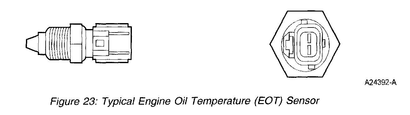 The EOT sensor measures the temperature of the engine oil. The sensor is typically threaded into the engine oil lubrication system. The PCM can use the EOT sensor input to determine the following: