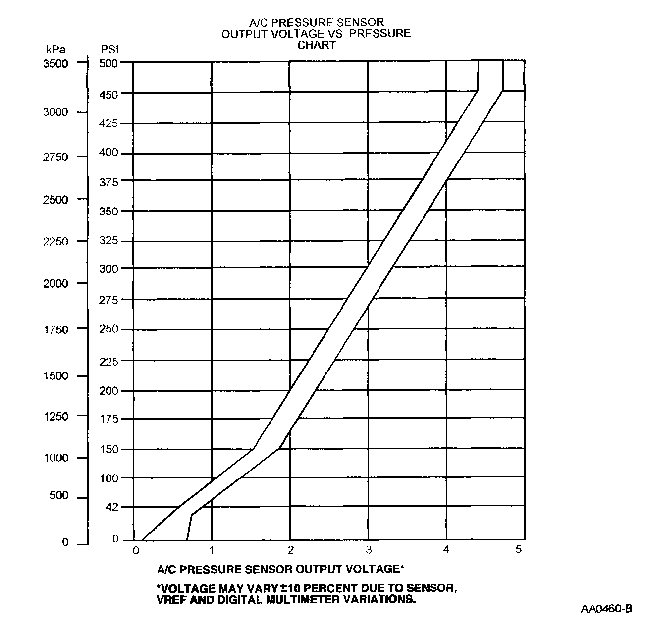 NOTE: These values can vary 15 percent due to sensor and VREF variations. Voltage values were calculated for VREF equals 5.0 volts.
