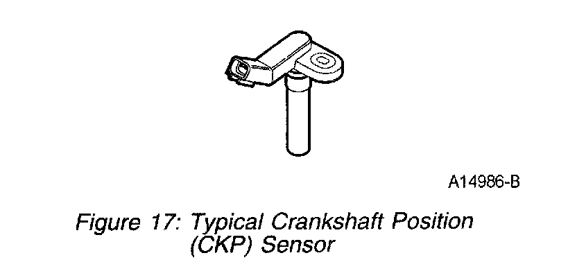 The CKP sensor is a magnetic transducer mounted on the engine block adjacent to a pulse wheel located on the crankshaft. By monitoring the crankshaft mounted pulse wheel, the CKP is the primary sensor for ignition information to the PCM. The pulse wheel has a total of 35 teeth spaced 10 degrees apart with one empty space for a missing tooth. The 6.8L 10-cylinder pulse wheel has 39 teeth spaced 9 degrees apart and one 9 degree empty space for a missing tooth. By monitoring the pulse wheel, the CKP sensor signal indicates crankshaft position and speed information to the PCM. By monitoring the missing tooth, the CKP sensor is also able to identify piston travel in order to synchronize the ignition system and provide a way of tracking the angular position of the crankshaft relative to a fixed reference for the CKP sensor configuration. The PCM also uses the CKP signal to determine if a misfire has occurred by measuring rapid decelerations between teeth.