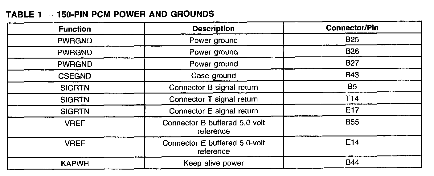 150-PIN PCM Power And Grounds (Part 1):