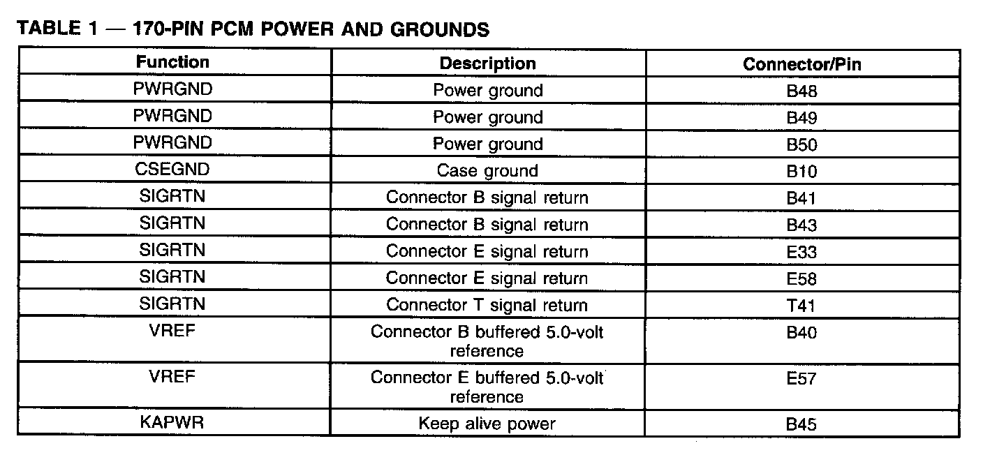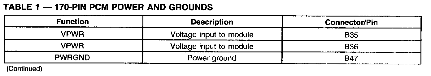 170-PIN PCM Power And Grounds (Part 1):