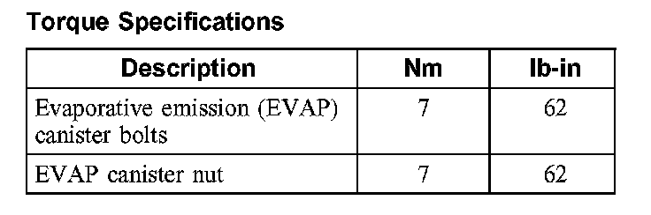 Torque Specifications: