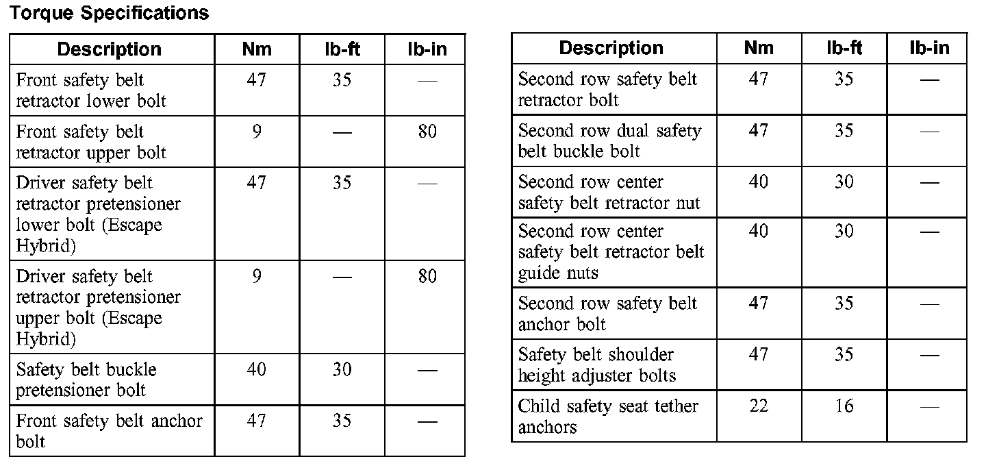 Torque Specifications: