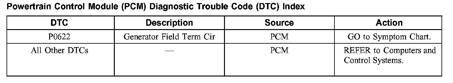 Powertrain Control Module (PCM) Diagnostic Trouble Code (DTC) Index