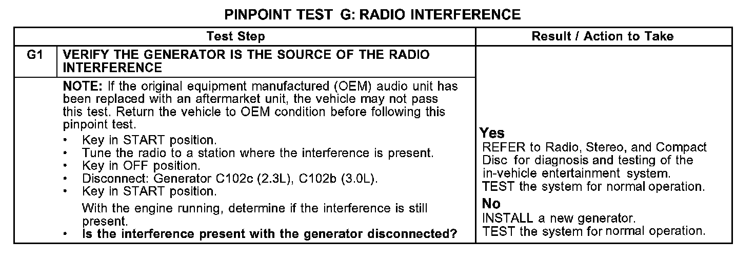 PINPOINT TEST G: RADIO INTERFERENCEG1: