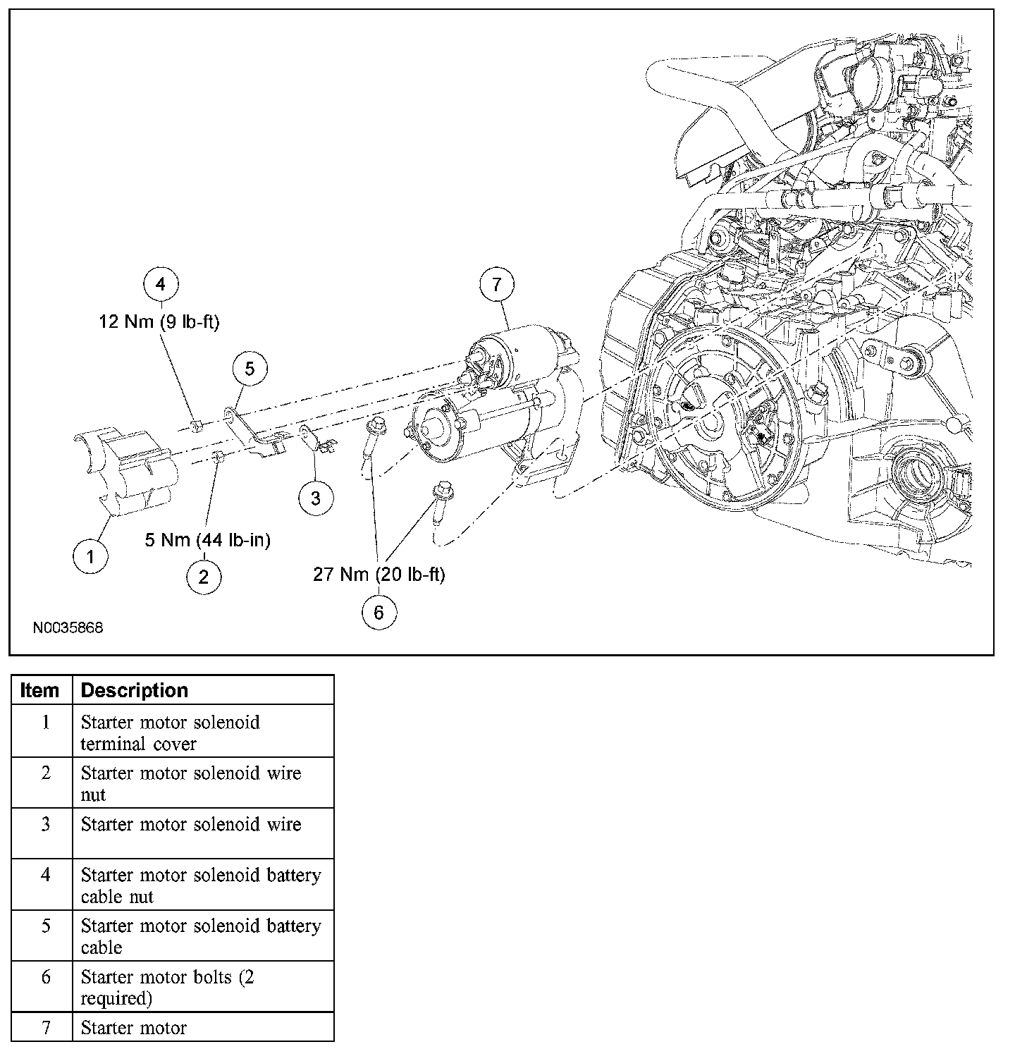 6. Remove the 2 starter motor bolts and the starter motor.