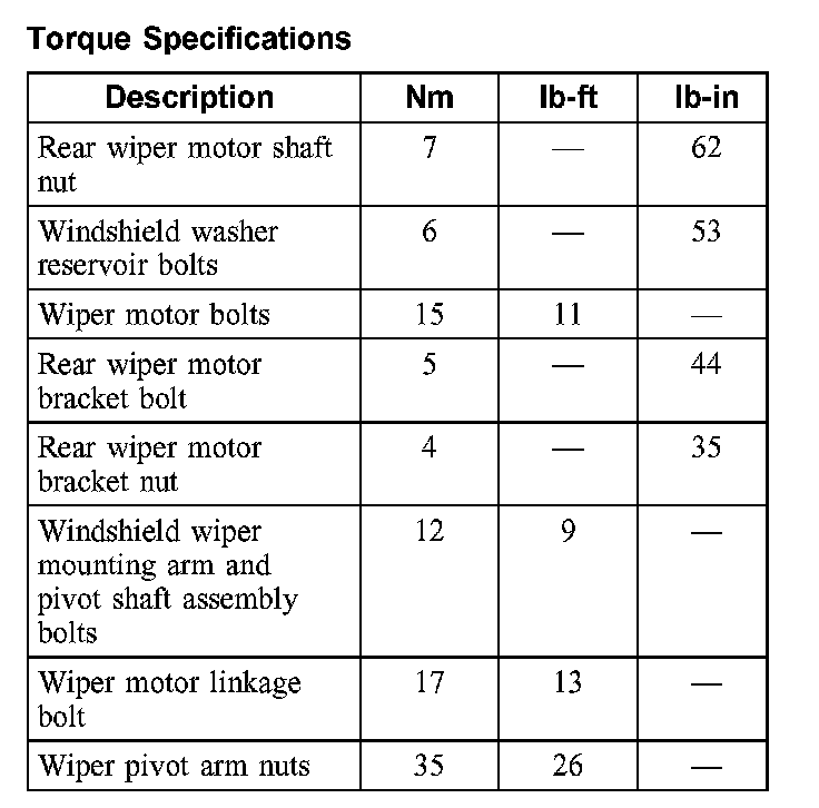 Torque Specifications