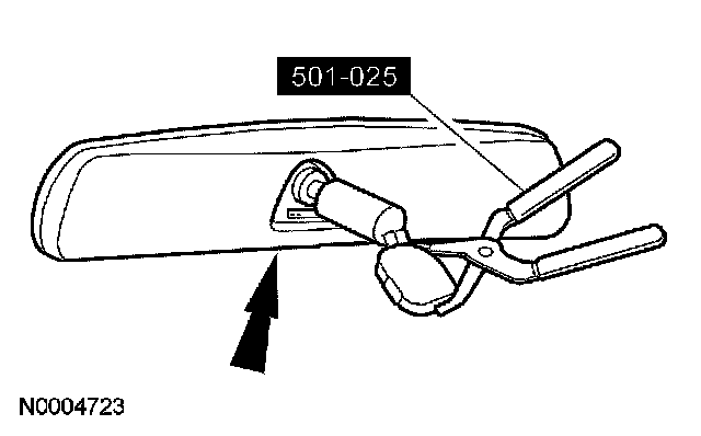 CAUTION: The interior rear view mirror is of the break-away design. Excessive force in any direction may cause damage to the mirror or the windshield.